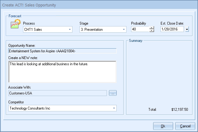 QuoteWerks writes line item details into Act! Sales Opportunities