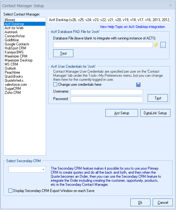 For more information on the ACT! integration, please see: