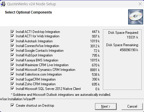 Important: If you're installing QuoteWerks on a network, remember that you'll need to run this node installation (i.e., complete steps 12 through 18) on each additional network workstation you'd like to use QuoteWerks from. |