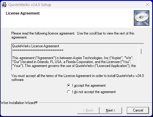 Step 2: Click Next on the QuoteWerks Setup Wizard that launches.