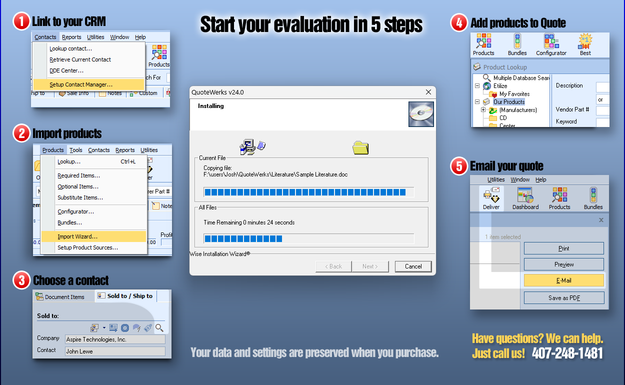 Step 13: Starting with QuoteWerks version 4.0, QuoteWerks uses Microsoft MDAC and Jet database technologies to access data. As a result, these products must be installed. The QuoteWerks setup program will install these for you.