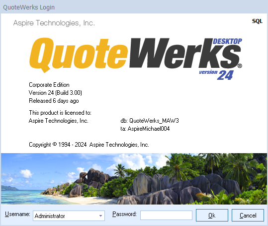 Your installation is now complete. You can enter your License Key(s) or continue in Demo Mode. If you’ve already entered a License Key into this installation, you’ll be able to log in to QuoteWerks. If installing on a network, proceed to Performing a Multiple-User Network Installation