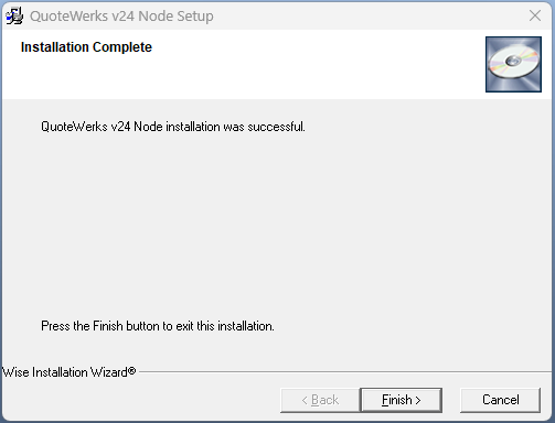 Step 16: Once the QuoteWerks Node Setup has finished, the Installation Complete window will appear, letting you know that the entire installation was successfully completed.
