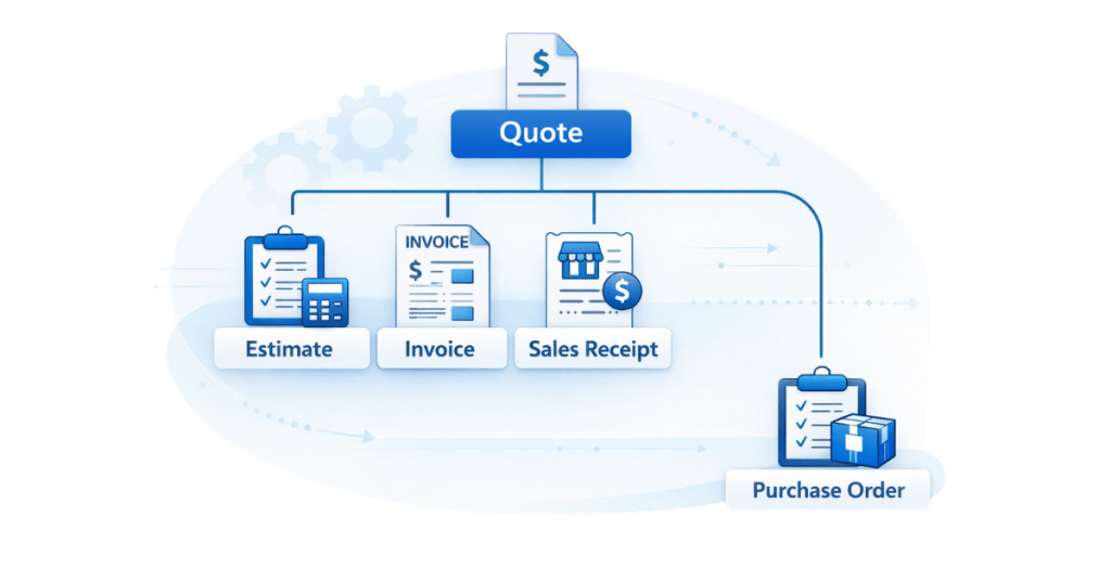 Only one transaction is created per document to ensure QuickBooks reflects finalized business activity, not in-progress quotes.