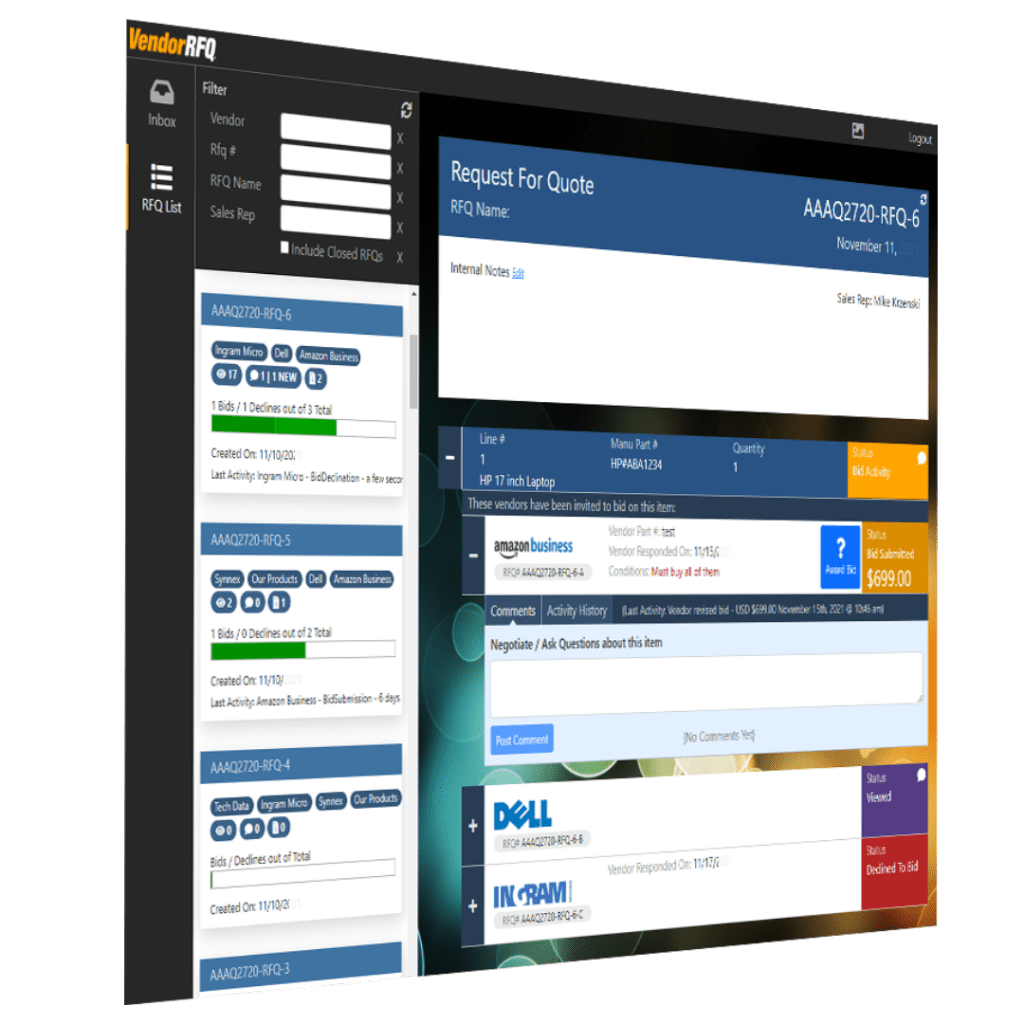 For teams that need to gather pricing from multiple vendors, QuoteWerks VendorRFQ extends the quoting process by centralizing vendor requests and responses.