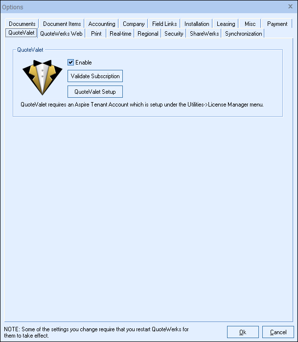 QuoteValet is the online quote delivery and acceptance vehicle for QuoteWerks. It enables users to send QuoteWerks documents to their customers without a PDF attachment in the email. QuoteValet creates a personalized web page on QuoteValet.com and automatically creates a link to the web page and inserts it into the email being sent to the customer. When the customer clicks on the link in the email, their quote will be opened in their web browser and an email will be sent to the QuoteWerks user notifying them that their quote has been viewed. Customers can also electronically accept the quote in their browser and submit questions on the document without having to navigate away from their quote. Notifications will also be sent via email when questions are submitted or the quote is approved. Credit card payment can also be accepted for the order. QuoteValet is an optional add-on subscription for QuoteWerks.