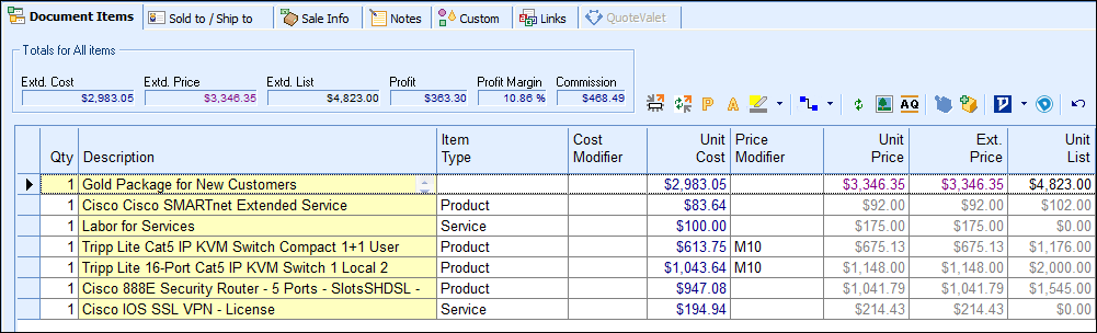 Tip: The Group Header Unit Price can be manually set. For example, if you change the Unit Price of the group to $3500.00, all of the items in the group will recalculate to come out to the new total. This provides a lot of flexibility to charge exactly what you want for a group instead of the calculated total. The difference in the calculated price and the manually set price will be evenly distributed among all the items in the group by percentage. Please note, using this feature will remove any price modifiers set. |