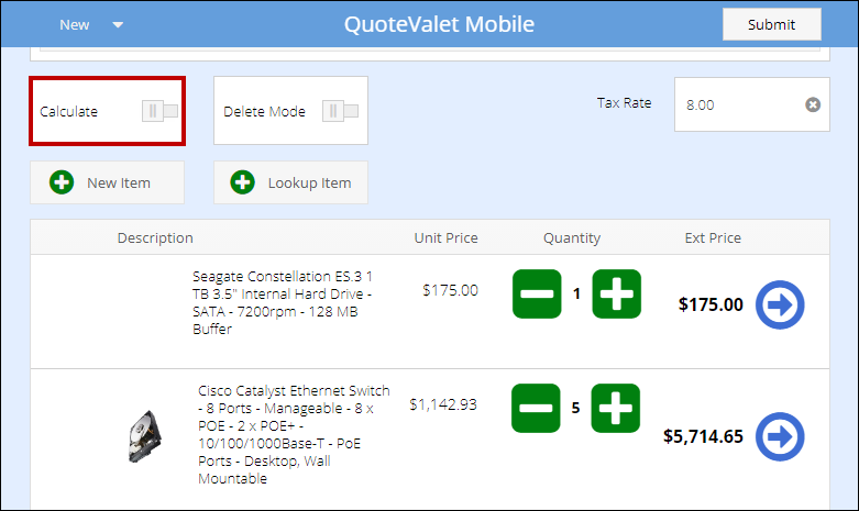 If you do not wish for QuoteValet Mobile to automatically calculate the totals for you as you create the document, you can turn it off on a per document basis.