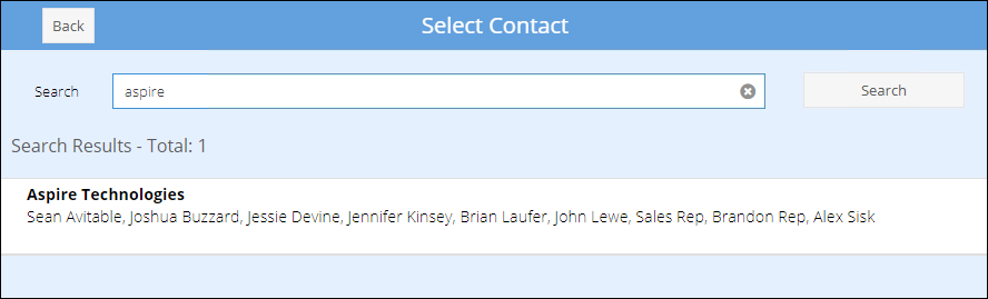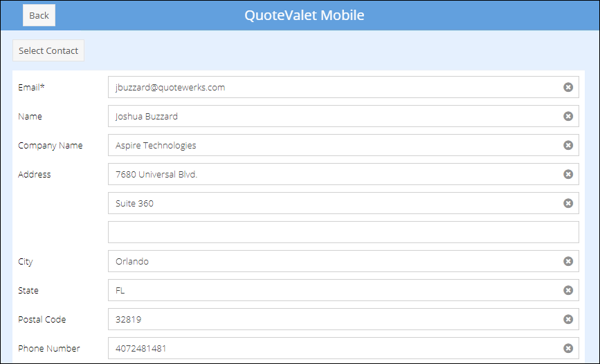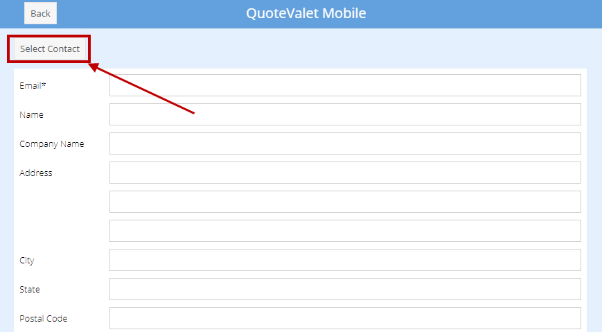 icon at the bottom. This will just let you search contacts however; you will not be able to pull any of these details into the quote from this screen.