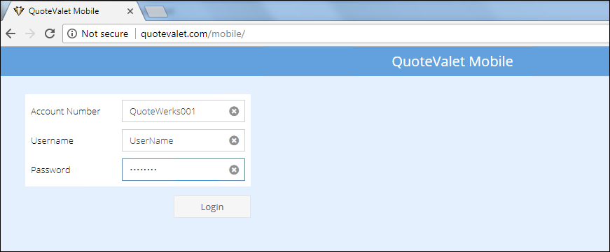 Next, log into QuoteValet Mobile by entering this address in your web browser from your tablet or smartphone: