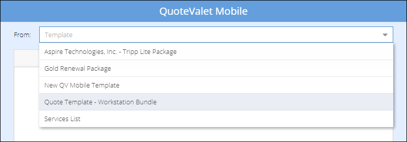 Click on the drop-down box titled “Template” to view your previously uploaded templates in QuoteValet Mobile: