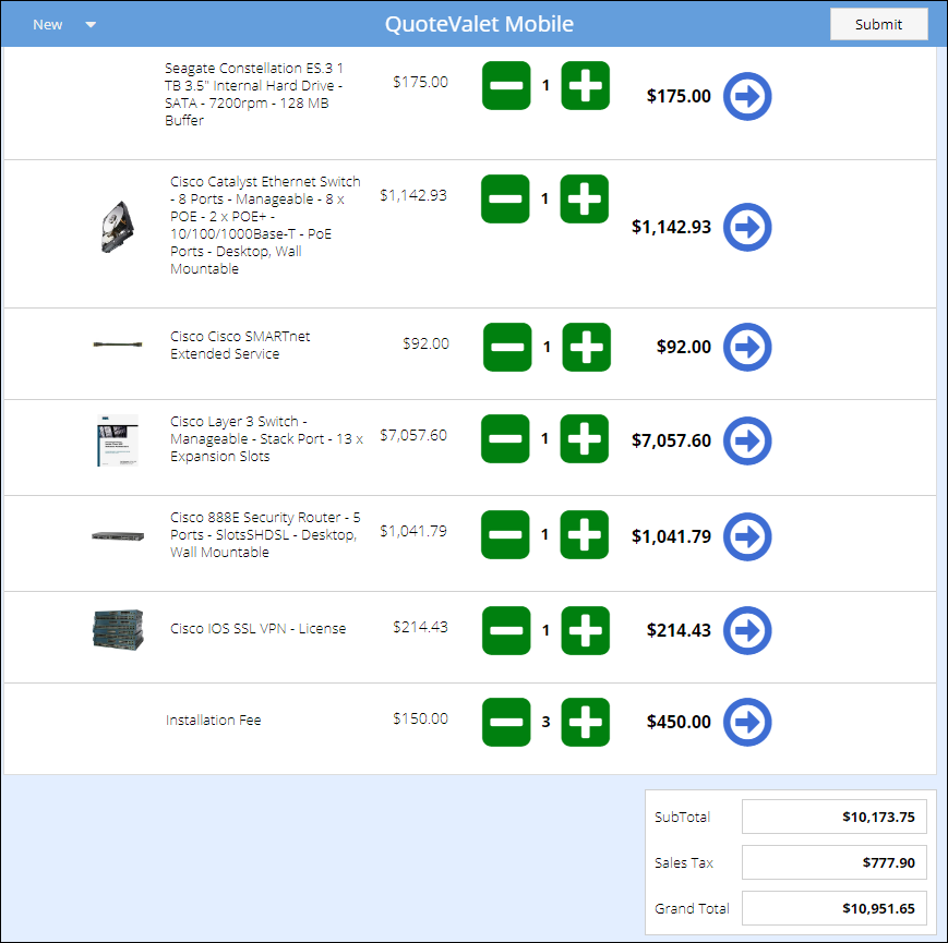 QuoteValet Mobile is template driven. This means that users will need to create different templates in QuoteWerks with products already loaded prior to using QuoteValet Mobile. Access to your products databases is not available, however you can create a template with the products and services used most often on a template and upload that to QuoteValet Mobile. This will enable you to pick from that template the products and/or services to you need to add to the quote.