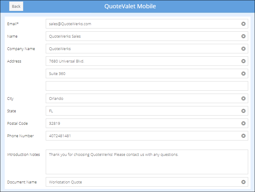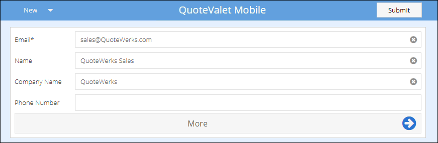 icon in the top right of the window to submit the document to QuoteValet to be uploaded to the QuoteValet server and emailed to the customer.