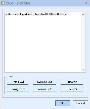 Step 8: Type the number 25. This will display the text “.if.DocumentHeaders->subtotal>=1000.then.0.else.25”: