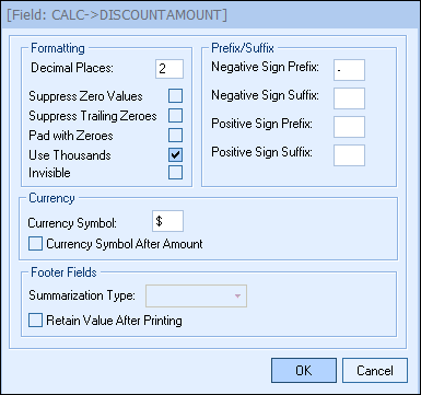 Step 5: Click on the [Ok] button, and then place the formula on the print layout. This formula you would want to place into a Detail Section of the layout. Now your layout will display the discount amount (ie.$10.00) that your customer has received for the item.