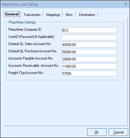 Enter the GL Purchase account number from Sage 50 (Peachtree) to be used for any items that are exported to Sage 50 (Peachtree) without a Sage 50 (Peachtree) Item ID.