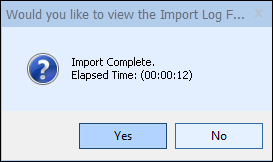 After the import has completed, you will be asked if you would like to view the Import Log File for errors.