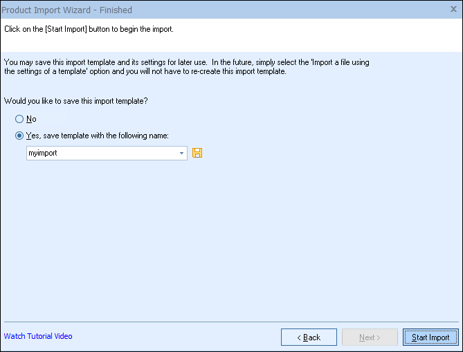 After you have entered all the settings into the import wizard, you may want to save these settings to a template so that the next time you run this import, you can load the import settings from the import template, rather than having to re-choose all the settings again.