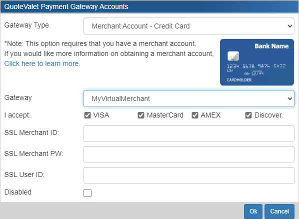 This topic covers how to set up QuoteValet payment processing to work with My Virtual Merchant/Converge. To set up the integration, you will need 3 required pieces of information.