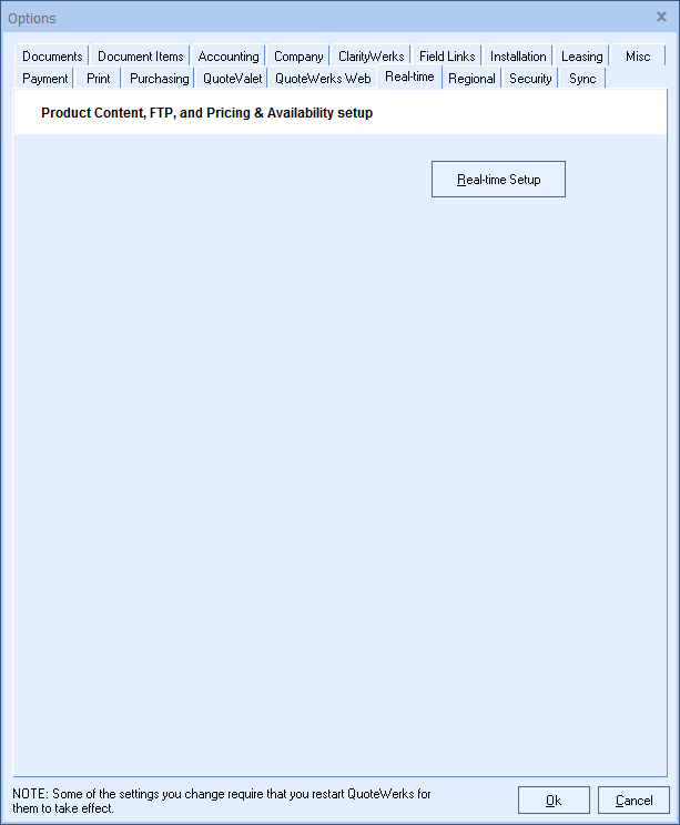 Important: Only users with Master Rights (e.g., Administrator) can modify settings on this Real-time tab, unless the installation is a Remote Site or Remote PC installation. |
