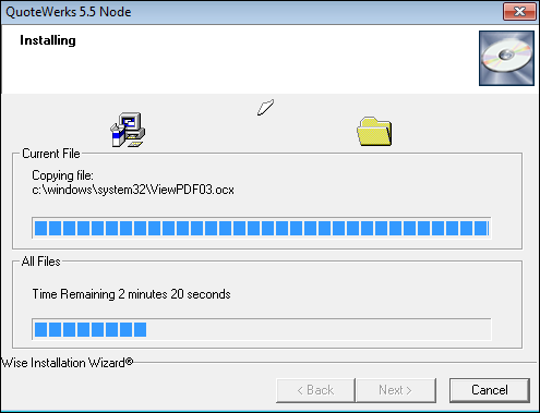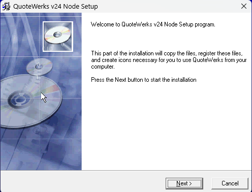 Step 12: Next, the QuoteWerks Node Installation window will appear. This part of the installation will copy over system files and create icons necessary for you to use QuoteWerks on your workstation.
