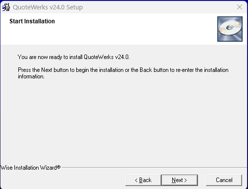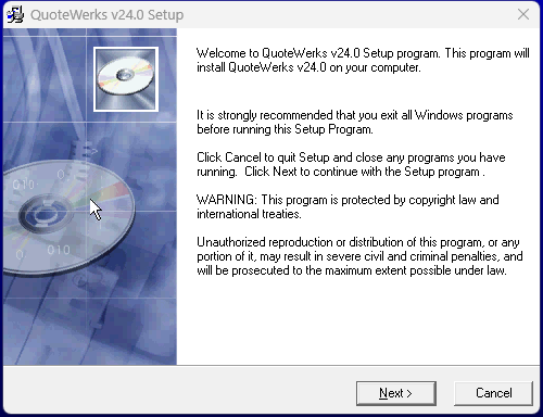Step 2: Click Next on the QuoteWerks Setup Wizard that launches.