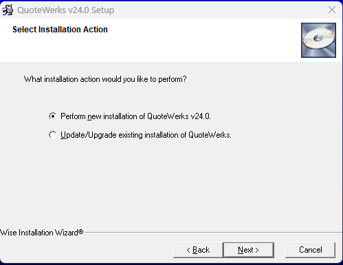 Step 6: Select Perform new Installation of QuoteWerks to install a fresh copy of QuoteWerks.