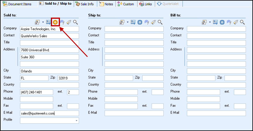 While ACT! is running, select the Sold to / Ship to Tab in QuoteWerks: