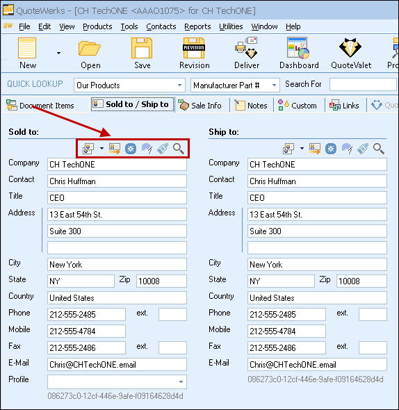 Select the Sold to / Ship to Tab in QuoteWerks and click on the