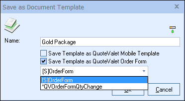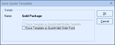 Check the Save Template As QuoteValet Order Form box and click on the [Ok] button. If you do not check this box, this template will not be uploaded to QuoteValet.