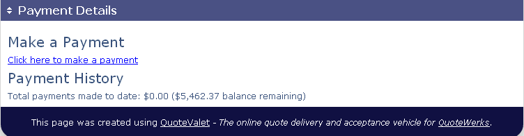 This payment screen in the order form is the same one that is used for QuoteValet quotes.