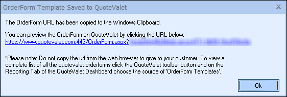 The following dialog box will appear with your new QuoteValet Order Form URL: