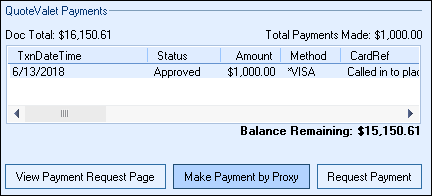 Listed under the QuoteValet payments is the status of payments for this document. If a user has posted partial or full payment for this document, it will be listed here. The user has access to three buttons for payments: