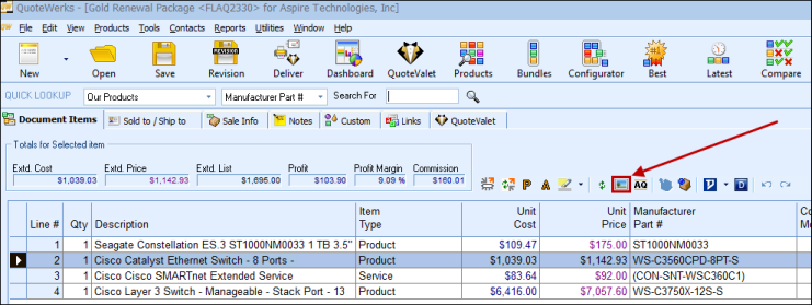 To add a video to a line item on an existing document in QuoteWerks, follow these instructions: