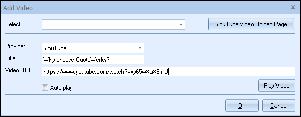 5. If you would like to upload a new video to YouTube to use in your document, you can click on the [YouTube Video to Upload Page] button and QuoteWerks will open your YouTube account so you can upload a new video.