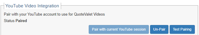 The YouTube Video Integration enables users to pair QuoteValet with their YouTube account. This integration will allow users to select videos for their QuoteValet documents that have already been uploaded to YouTube instead of having to manually copy and paste the video URL.
