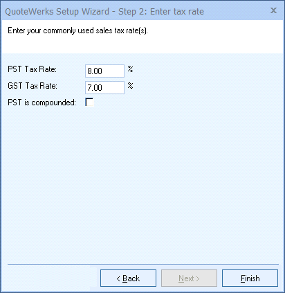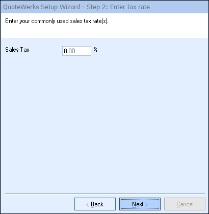 Step 1: Select your country from the Country drop-down box. QuoteWerks uses this selection to determine which sales tax system to use: "United States" or "Canada". If you’re installing QuoteWerks in a country not listed, please select "Other", which will set the sales tax system to use a single tax rate.