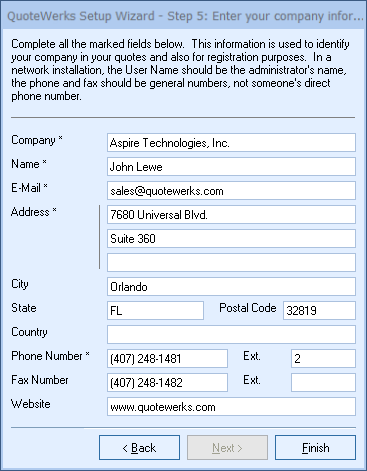 Step 6: Click on the [Finish] button to close the QuoteWerks Setup Wizard.